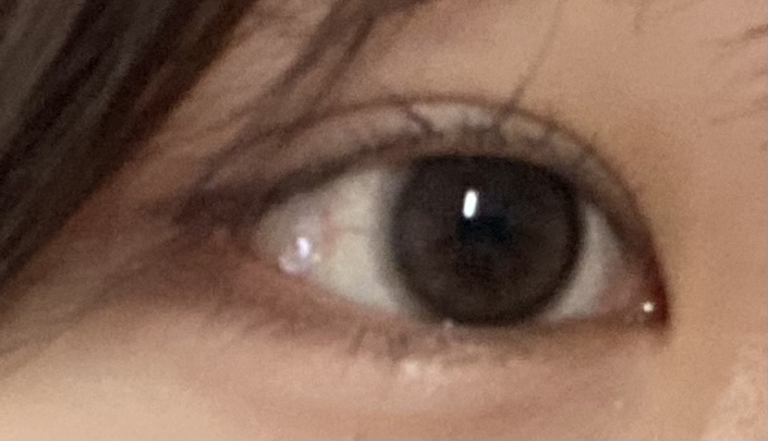 私は黒目が小さい方ですが、裸眼の目つきのキツさをめちゃくちゃ緩和してくれてやわらかい印象になります。太フチだけどフチのグラデーションがすごく自然なのでメガサイズでも宇宙人にならずに違和感なく盛れて良いです。iPhoneカメラの他撮りでも瞳のうるうる感が伝わって可愛すぎます!色も落ち着いたブラウンでベタっと見えず、瞳に立体感が出て自然に色素を薄く見せてくれるので甘めのメイクによく合うと思います。また買いたいです!