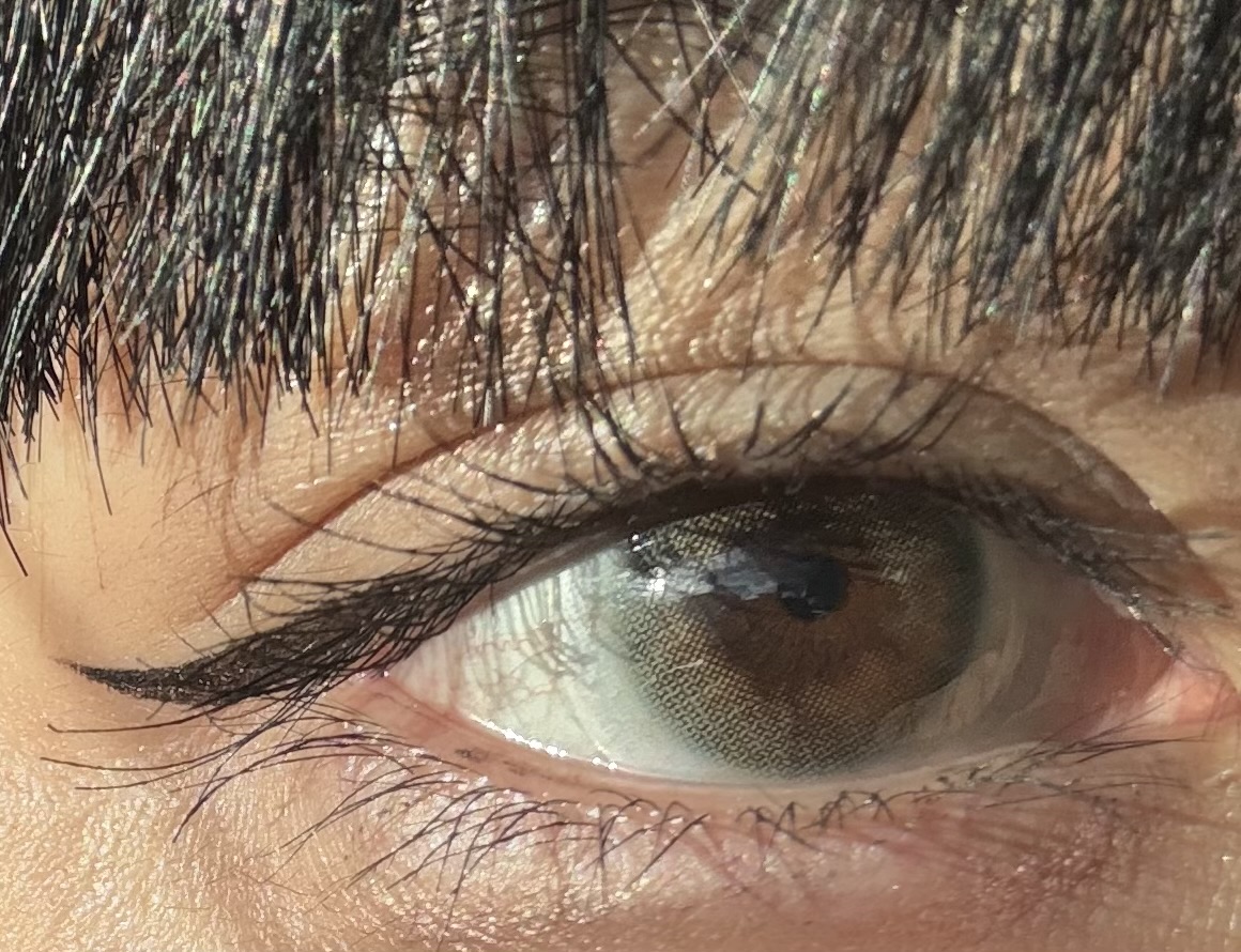黒目なのでハーフカラコンをつけても中々期待通りにはならないです、、、 これは太陽光に当たった状態です 光が当たるとハーフっぽくて綺麗でした! この感じが普段もだといいなーって感じでした 逆にナチュラルハーフって感じで普段使いしやすいハーフカラコンでもあるかな?と 縁なしが好きなのでデザインは満足です!
